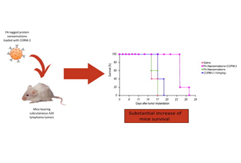 Folic Acid (FA)-tagged protein nanoemulsions were found to be preferentially internalized on B-cell lymphoma cell line (A20 cell line), which, for the first time, are reported to express folate receptor (FR)-alpha. Carbon monoxide releasing molecule-2 (CORM-2) was incorporated in the oil phase of the initial formulation. FA-functionalized nanoemulsions loaded with CORM-2 exhibited a considerable antitumor effect and an increased survival of BALB/c mice bearing subcutaneous A20 lymphoma tumors. The developed nanoemulsions also demonstrated to be well tolerated by these immunocompetent mice. Thus, the results obtained in this study demonstrate that FA-tagged protein nanoemulsions can be successfully used in cancer therapy, with the important ability to delivery drugs intracellularly.